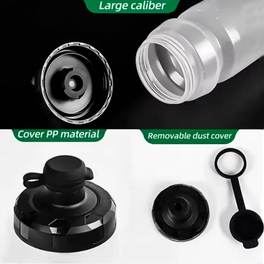 Fabricado en polietileno de baja densidad, PP y silicona, este bidón deportivo es seguro, no tóxico y resistente a la luz solar, ideal para uso diario y deportes al aire libre.
